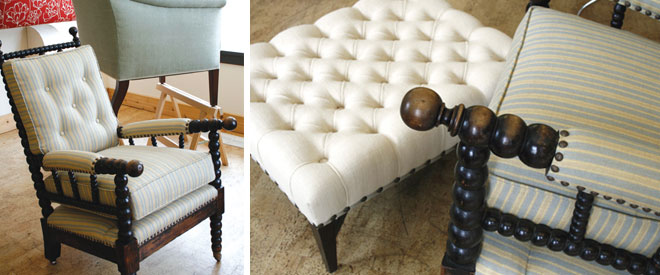Most upholstered furniture available today is mass produced either in China or here in the United States. Ours is not. We make each frame individually by hand and upholster every chair, sofa, and ottoman specifically for a client. Even the pieces shown here as a part of our furniture line can be altered dimensionally to specifically fit the needs of the person for whom it is being made, because each is made one by one.