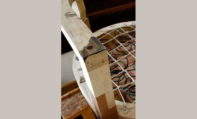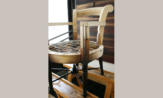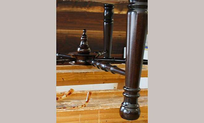 Our frames are made of assorted hardwoods, with turned legs made of cherry or maple.