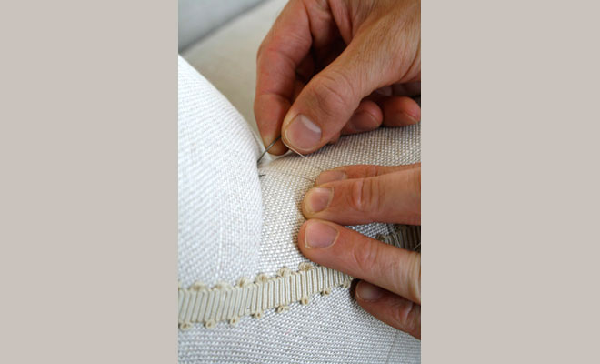 Many of the finish details, like decorative trim and nail heads, are hand applied. And, hand stitching of seams is still done to create the very best final product. All of this takes time and it results in a stellar piece when complete.