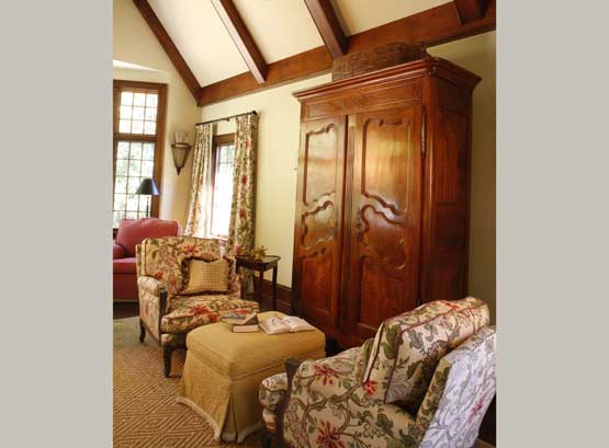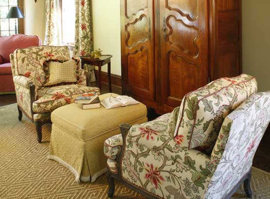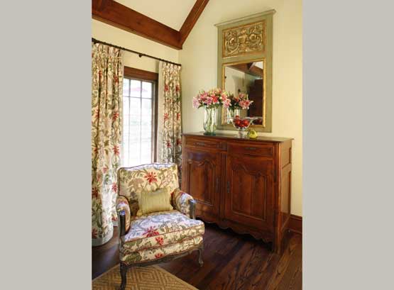 A beautiful collection of European antiques sets the stage for a traditional interior that is alive with color, pattern and refined architectural lines.