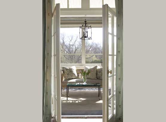 Created with a nod to the 1920’s heritage of the home, a young woman’s bedroom and sleeping porch exude a classic palette, beautiful wood tones and a subtle but refined attention to detail.